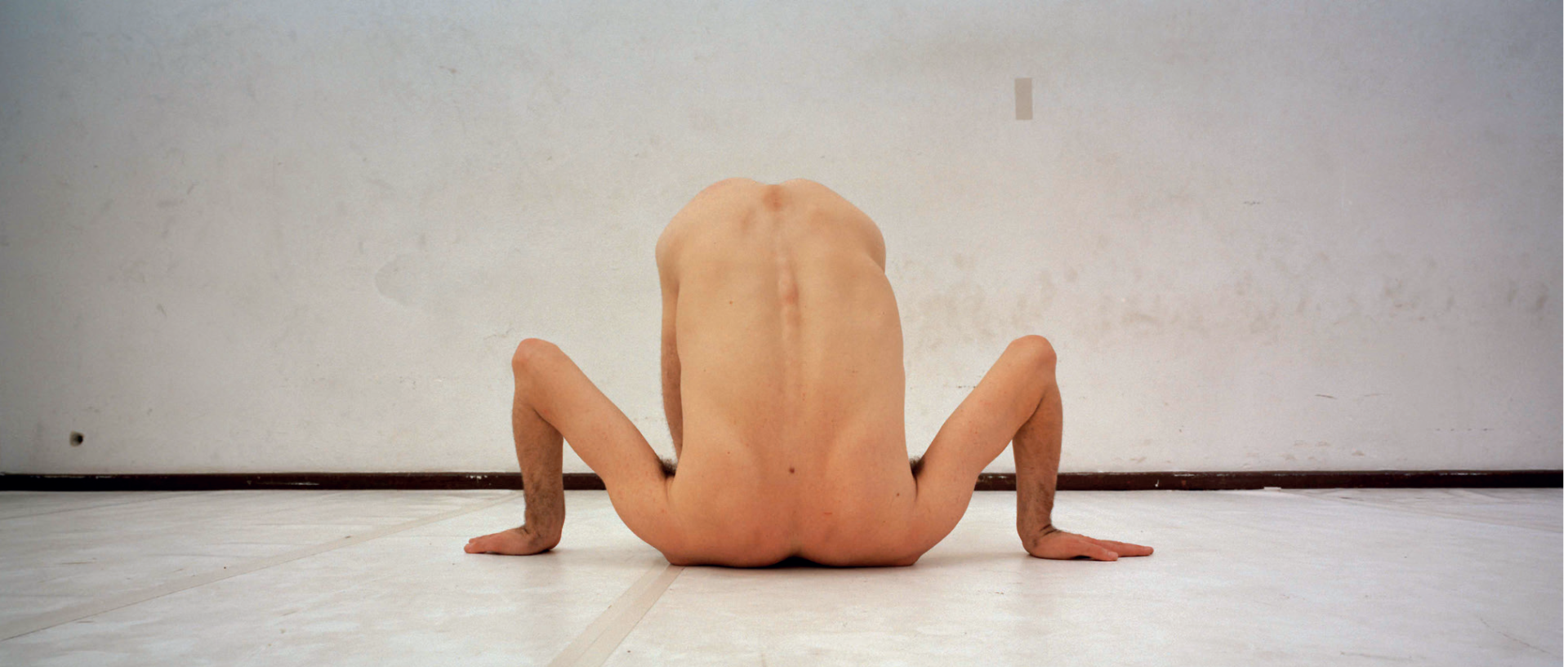 Xavier Le Roy's work Self unfinished (1998) can veritably be described as an artistic 'blueprint' for phenomena of the incomplete. In this solo, in which the dancer and choreographer Le Roy goes through various stages of metamorphosis, the body is investigated and put up for disposition as a mobile and moving working material. Similar to an experimental arrangement2, Le Roy moves from a standing position to crawling, crouching and lying down, peeling his body out of its clothing in the course of the piece and transforming it in torsions and vexed inversions, so that at times it creates oscillating effects in relation to the 'belonging' and proportionality of limbs, making it – at certain moments – difficult to discern where front and back, above or below are located (fig. 1 and 2).
