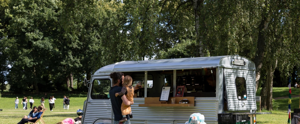 Auf dem Festivalgelände gibt es kühle Drinks an der Bar sowie süße und salzige Snacks für den kleinen Hunger. Am Wochenende locken zudem ein Kaffeewagen und ein Pizzastand mit einem heißen Pizzaofen vor Ort. Die Gastronomie auf dem Festivalgelände ist ausschließlich vegetarisch. In unmittelbarer Nähe befindet sich ein Biergarten mit einem umfangreichen Angebot an weiteren Speisen und Getränken.