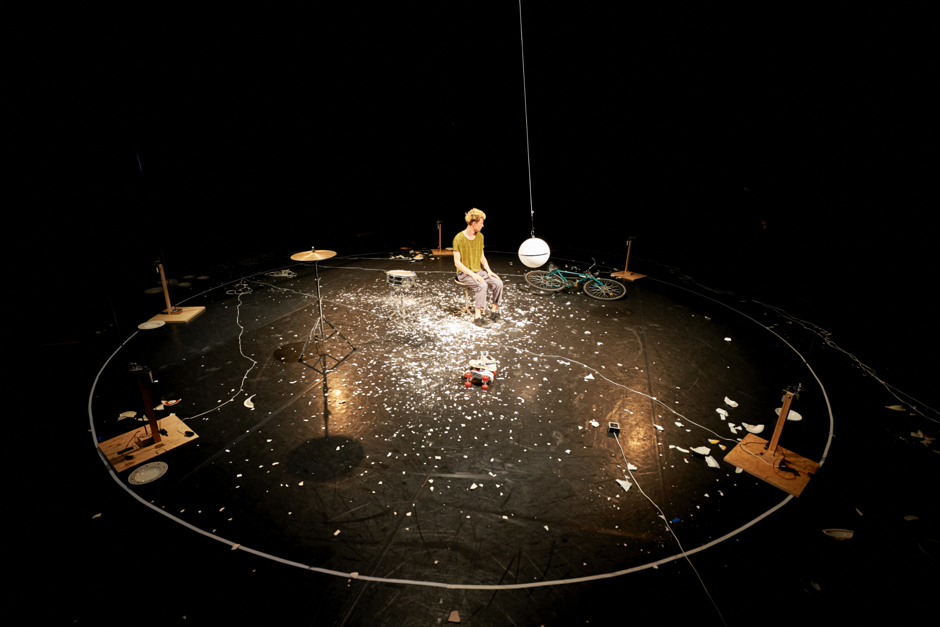 Genauso wenig im Kopf oder auf dem Reißbrett ist die jüngste Arbeit von Julian Vogel entstanden. Mit seinem einstündigen Bühnenstück „Ceramic Circus“ hatte er im Oktober 2024 Premiere im renommierten Kulturzentrum Les Subsistances in Lyon und ist seither international auf Tournee. Das Stück ist zum einen eine konsequente